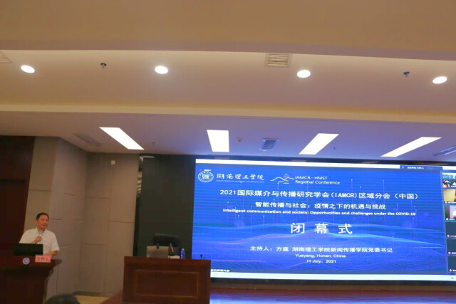 湖南理工学院新闻传播学院党委书记方庭主持会议的闭幕式,湖南理工学院社科发展中心处长鲁涛教授作闭幕致辞。鲁涛教授祝贺会议取得圆满成功,感谢莅会的所有国内外高校知名专家、青年学者、青年学子的智慧贡献,希望未来各位学术同仁勠力同心,致力于打造学术共同体,讲好中国故事,传播好中国声音,建设具有中国特色、中国风格、中国气派的人文社会科学。