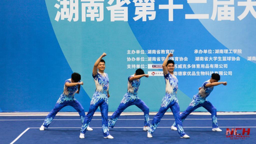 9月7日,湖南省第十二届大学生运动会健美操最后一项赛事--五人操决赛在我校体育综合训练馆圆满落幕。