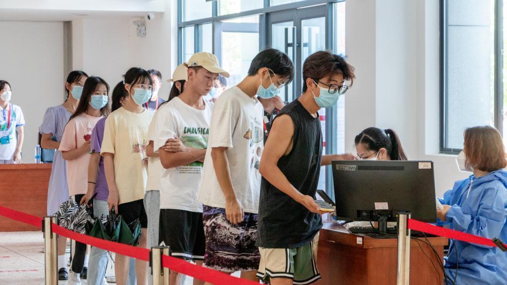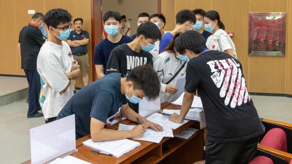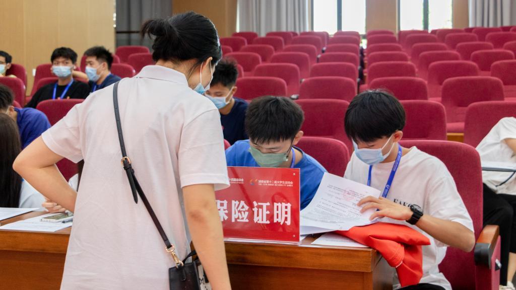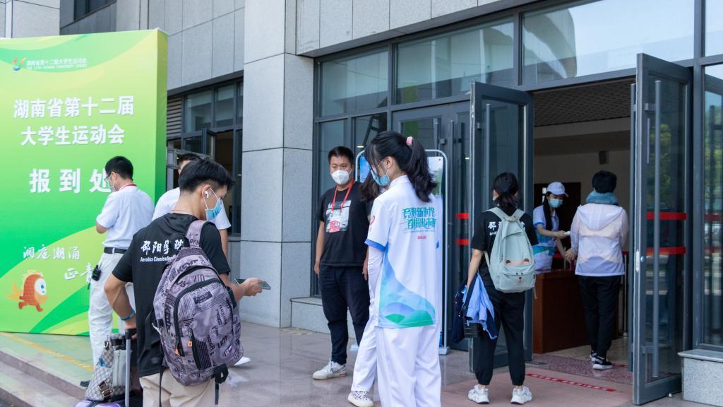 9月3日,湖南省第12届大学生运动会第一批参赛运动员抵达湖南理工学院报到。运动员依照提交核酸报告、疫情防控承诺书、体检证明、保险证明、身份核验、报到、领取参赛证和缴费等八个步骤,在现场工作人员、志愿者的热情引导和帮助下完成报名程序,顺利前往运动员村入住。