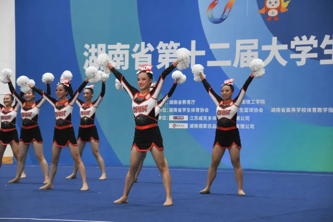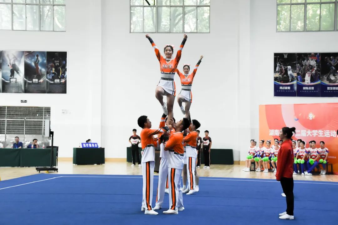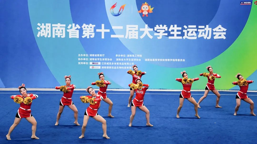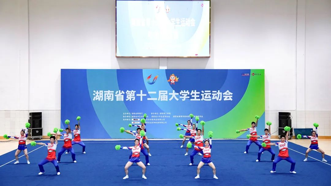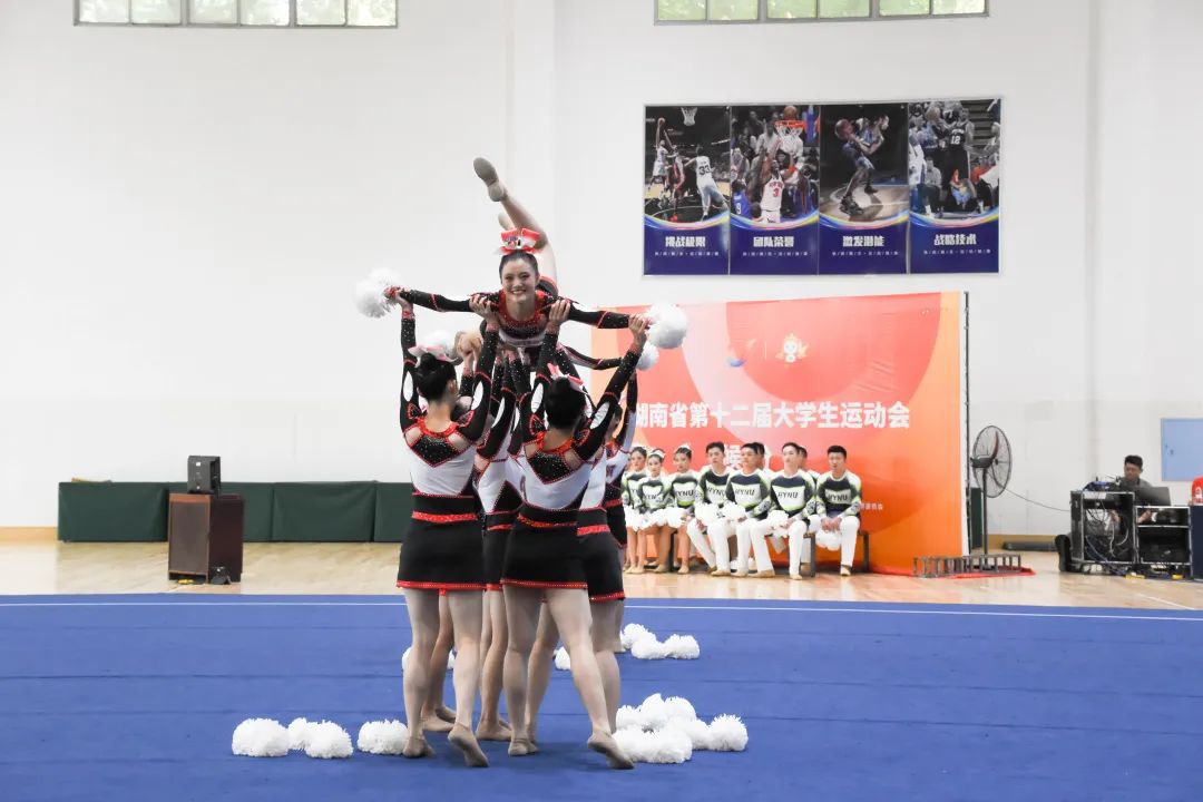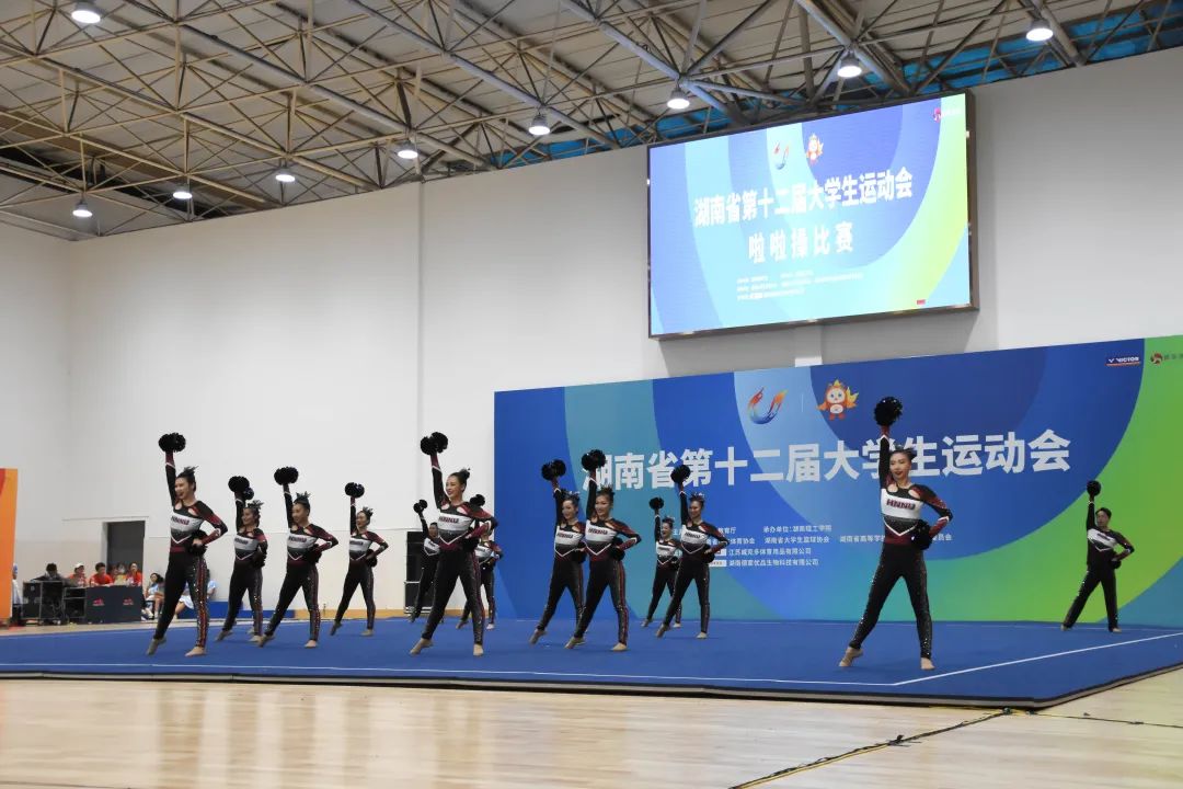 9月9日,湖南省第十二届大运会啦啦操比赛在湖南理工学院体育综合馆拉开帷幕,展开了花球规定、大学组花球自选、大学组及学院组规定技巧的角逐。