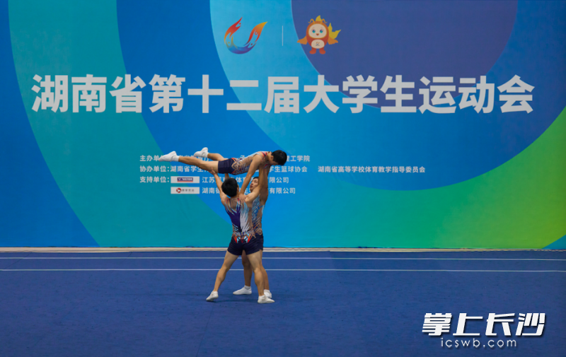 大运会第一个竞赛项目健美操比赛在湖南理工学院拉开帷幕。均为学校供图