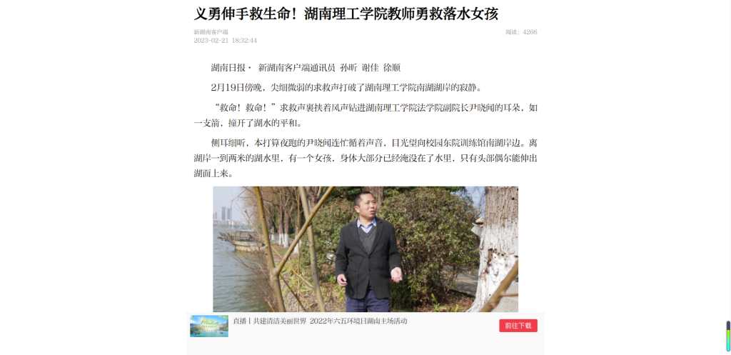 义勇伸手救生命!湖南理工学院教师勇救落水女孩