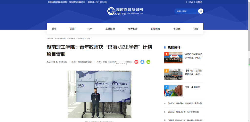 湖南理工学院:青年教师获“玛丽·居里学者”计划项目资助