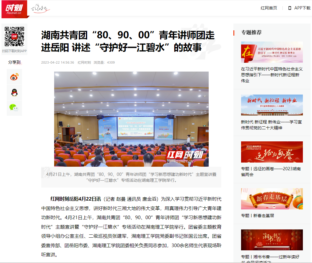 湖南共青团“80、90、00”青年讲师团走进岳阳 讲述“守护好一江碧水”的故事