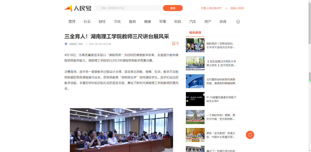 4月18日,为高质量推进实现以“课程思政”为目标的课堂教学改革,全面提升教师课程思政教学能力,湖南理工学院举行2023年课程思政教学竞赛决赛。