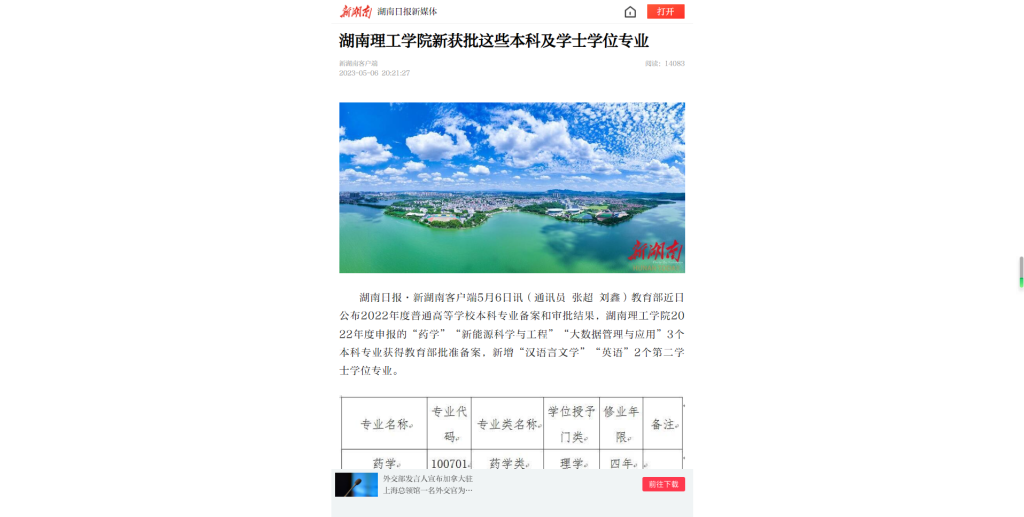 湖南日报·新湖南客户端5月6日讯(通讯员 张超 刘鑫)教育部近日公布2022年度普通高等学校本科专业备案和审批结果,湖南理工学院2022年度申报的“药学”“新能源科学与工程”“大数据管理与应用”3个本科专业获得教育部批准备案,新增“汉语言文学”“英语”2个第二学士学位专业。