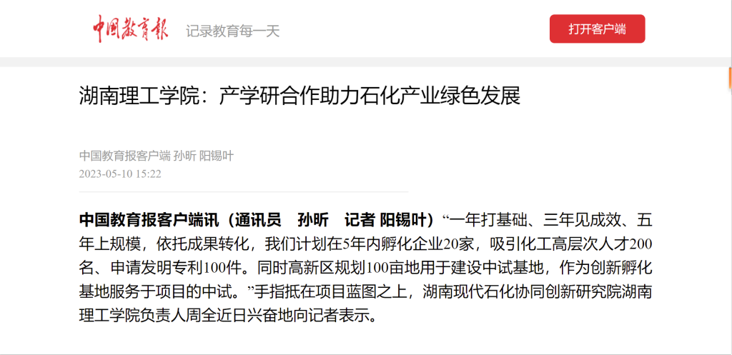 湖南理工学院:产学研合作助力石化产业绿色发展