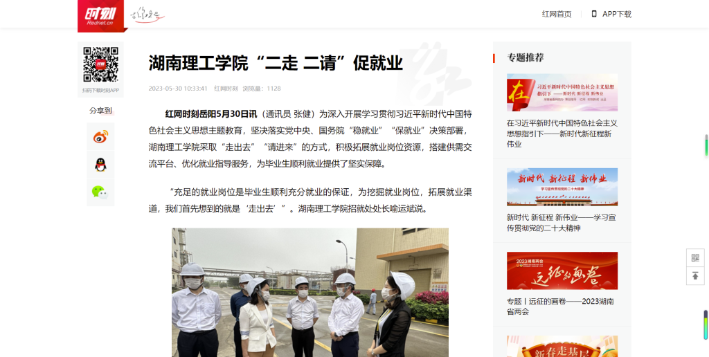 一同“走出去”的还有毕业生。在学校的组织下,4月下旬,32名毕业生赴岳阳市经开区重点企业走访求职;5月下旬,23名未就业毕业生赴浙江湖州市外出求职。