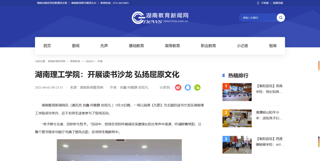 湖南理工学院:开展读书沙龙 弘扬屈原文化