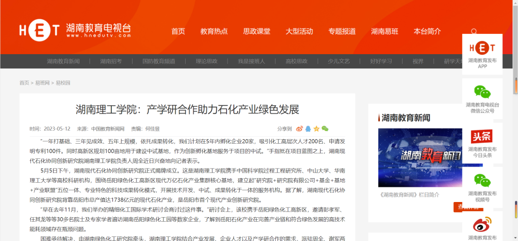 湖南理工学院:产学研合作助力石化产业绿色发展