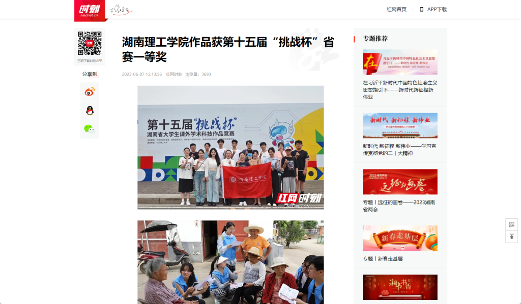 红网时刻岳阳6月7日讯(通讯员 龙红静 刘瑞)近日,第十五届“挑战杯”湖南省大学生课外学术科技作品竞赛结果揭晓,湖南理工学院新闻传播学院团队作品《乡村振兴背景下农村老年人数字融入的困境与路径研究——基于东中西部166个乡村的调查》获一等奖,成功入围国赛。