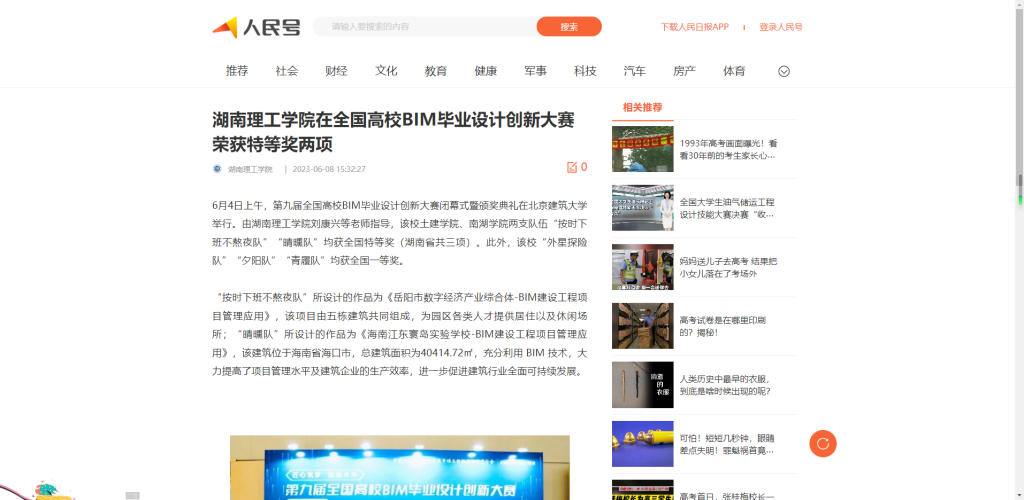 6月4日上午,第九届全国高校BIM毕业设计创新大赛闭幕式暨颁奖典礼在北京建筑大学举行。由湖南理工学院刘康兴等老师指导,该校土建学院、南湖学院两支队伍“按时下班不熬夜队”“晴曛队”均获全国特等奖(湖南省共三项)。此外,该校“外星探险队”“夕阳队”“青履队”均获全国一等奖。