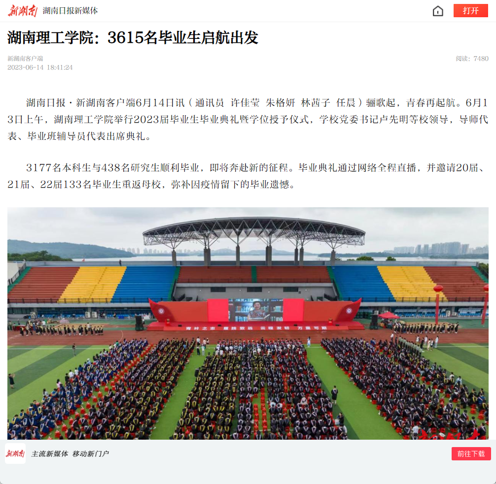 湖南日报·新湖南客户端6月14日讯(通讯员 许佳莹 朱格妍 林茜子 任晨)骊歌起,青春再起航。6月13日上午,湖南理工学院举行2023届毕业生毕业典礼暨学位授予仪式,学校党委书记卢先明等校领导,导师代表、毕业班辅导员代表出席典礼。