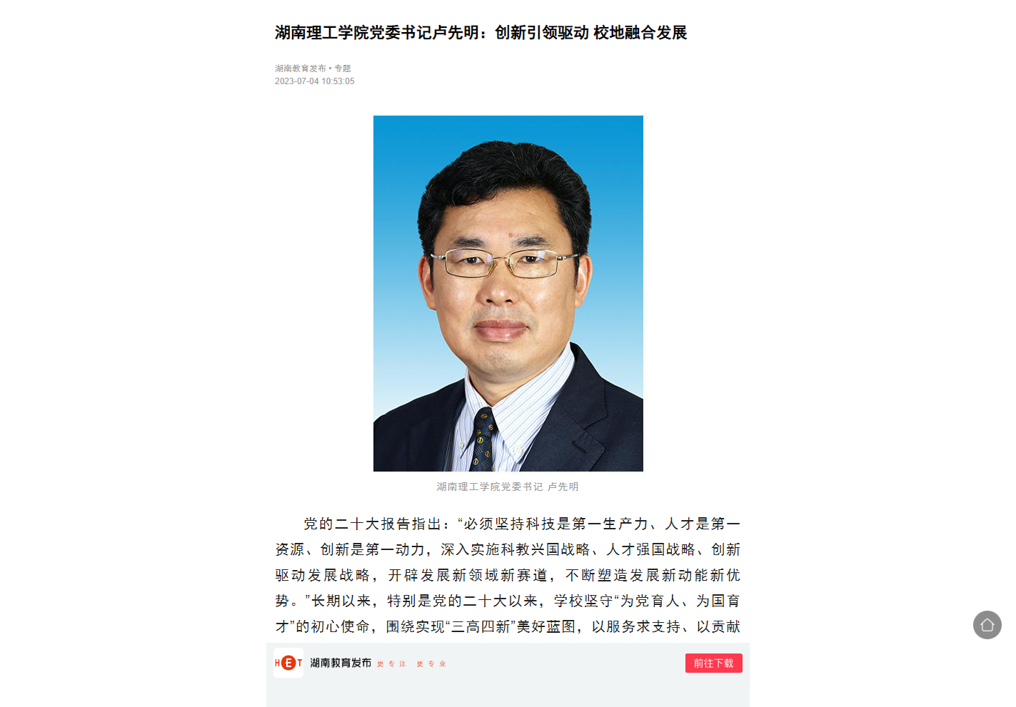 湖南理工学院党委书记卢先明:创新引领驱动 校地融合发展