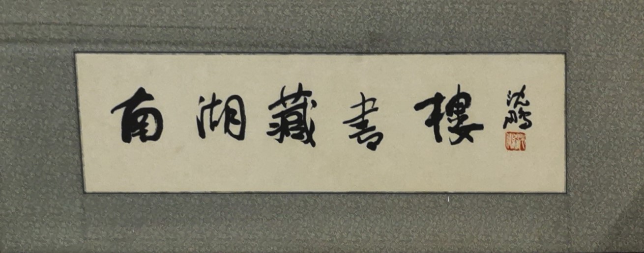 如今,在“南湖藏书楼”进门外墙刻有沈鹏先生题写的墨宝,原稿装裱悬挂在三楼。