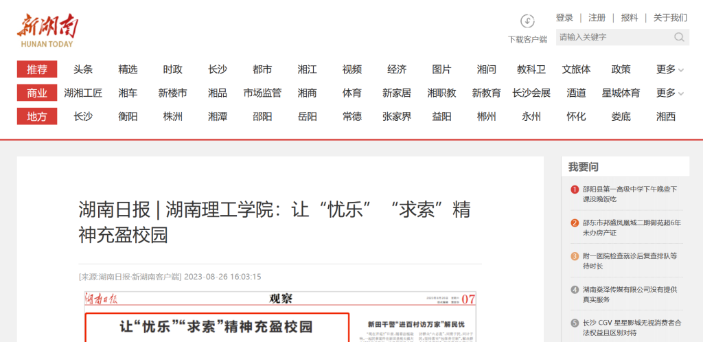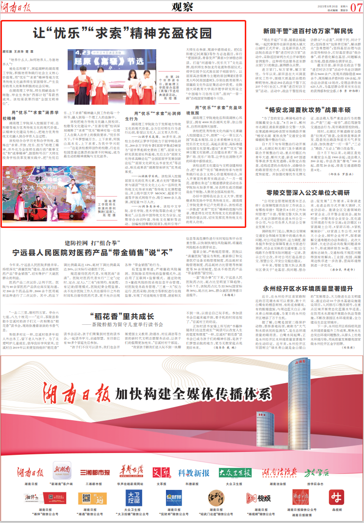 湖南日报 | 湖南理工学院:让“忧乐”“求索”精神充盈校园