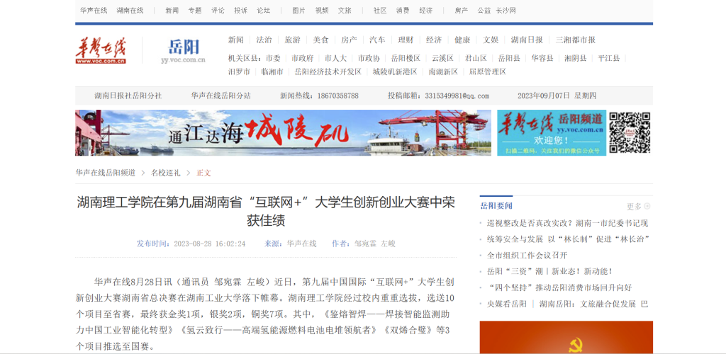 来源:湖南理工学院在第九届湖南省“互联网+”大学生创新创业大赛中荣获佳绩 名校巡礼 华声在线岳阳频道 (voc.com.cn)