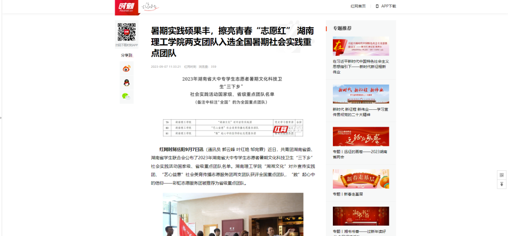 暑期实践硕果丰,擦亮青春“志愿红” 湖南理工学院两支团队入选全国暑期社会实践重点团队