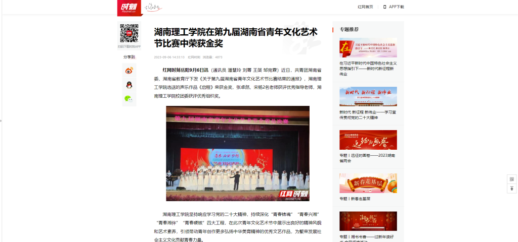 湖南理工学院在第九届湖南省青年文化艺术节比赛中荣获金奖