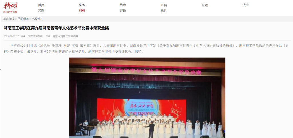 湖南理工学院在第九届湖南省青年文化艺术节比赛中荣获金奖