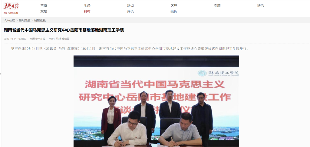 湖南省当代中国马克思主义研究中心岳阳市基地落地湖南理工学院