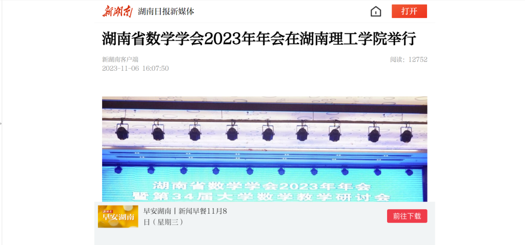 湖南日报•新湖南客户端11月6日讯(通讯员 邹宛霖 吴嵘)11月4日,由湖南省数学学会主办,湖南理工学院承办的湖南省数学学会2023年年会暨第34届大学数学教学研讨会,在湖南理工学院召开。湖南省数学学会理事长黄云清教授,省科协二级巡视员张学军,湖南理工学院校长曾祥君出席并分别致辞。来自省内外多所高校、200余名专家学者参加。
