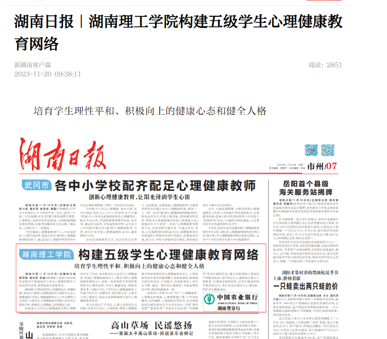 湖南日报|湖南理工学院构建五级学生心理健康教育网络