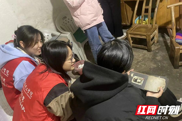 志愿者和李巧云奶奶一起回忆过去,翻看老照片。