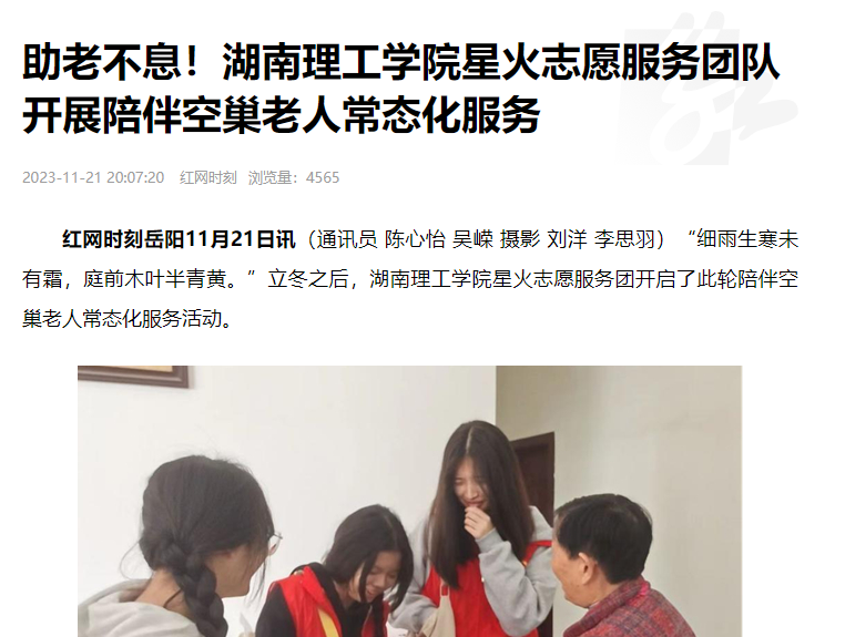 助老不息!湖南理工学院星火志愿服务团队开展陪伴空巢老人常态化服务