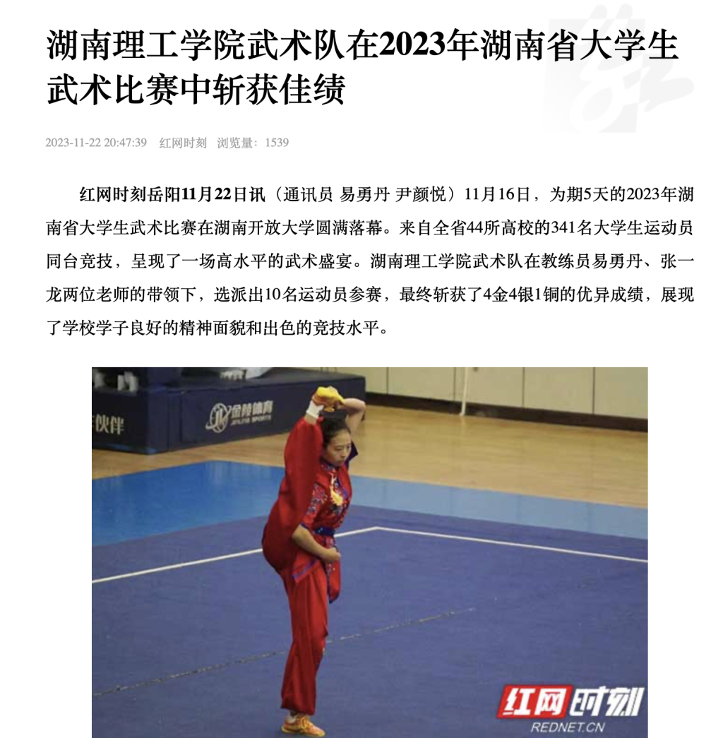 湖南理工学院武术队在2023年湖南省大学生武术比赛中斩获佳绩
