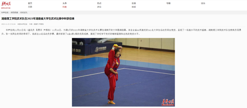 湖南理工学院武术队在2023年湖南省大学生武术比赛中斩获佳绩