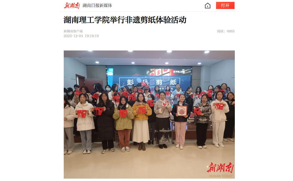 “一剪之趣奇神功,美在民间永不朽。”郭沫若先生曾用这样美妙的诗句,来赞美我国的民间剪纸艺术。这次活动让同学们真正了解到本土非遗中的岳州剪纸文化。近年来,湖南理工学院图书馆着力打造“非遗文化进校园”品牌,先后举办“洞庭渔歌”“巴陵全鱼宴”“平江皮影戏”“巴陵戏”“岳州扇”等有着鲜明地方特色的非遗展演体验活动,深受师生欢迎。
