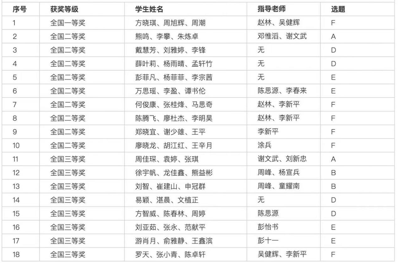 2023年全国研究生数学建模竞赛湖南理工学院获奖学生名单