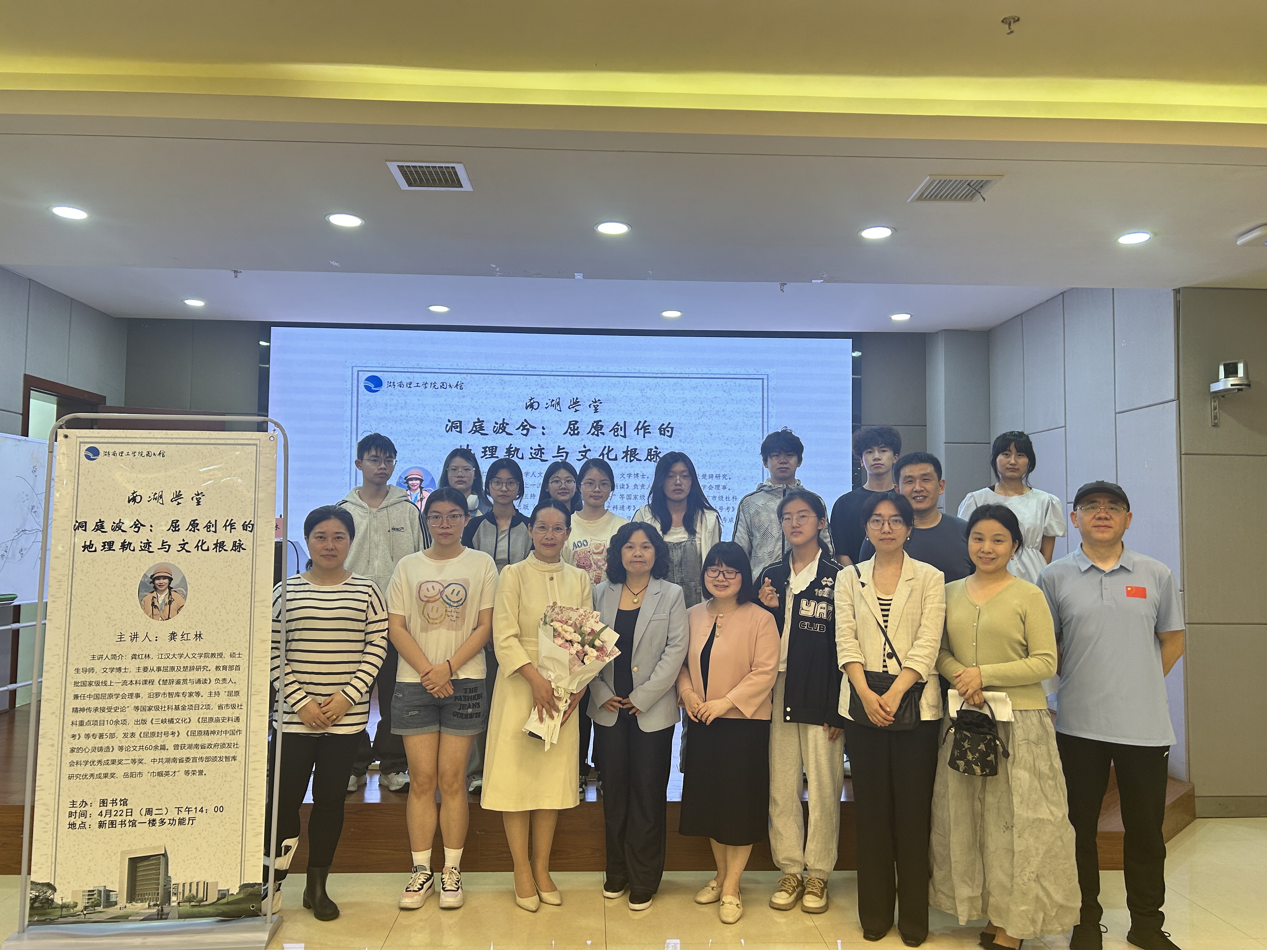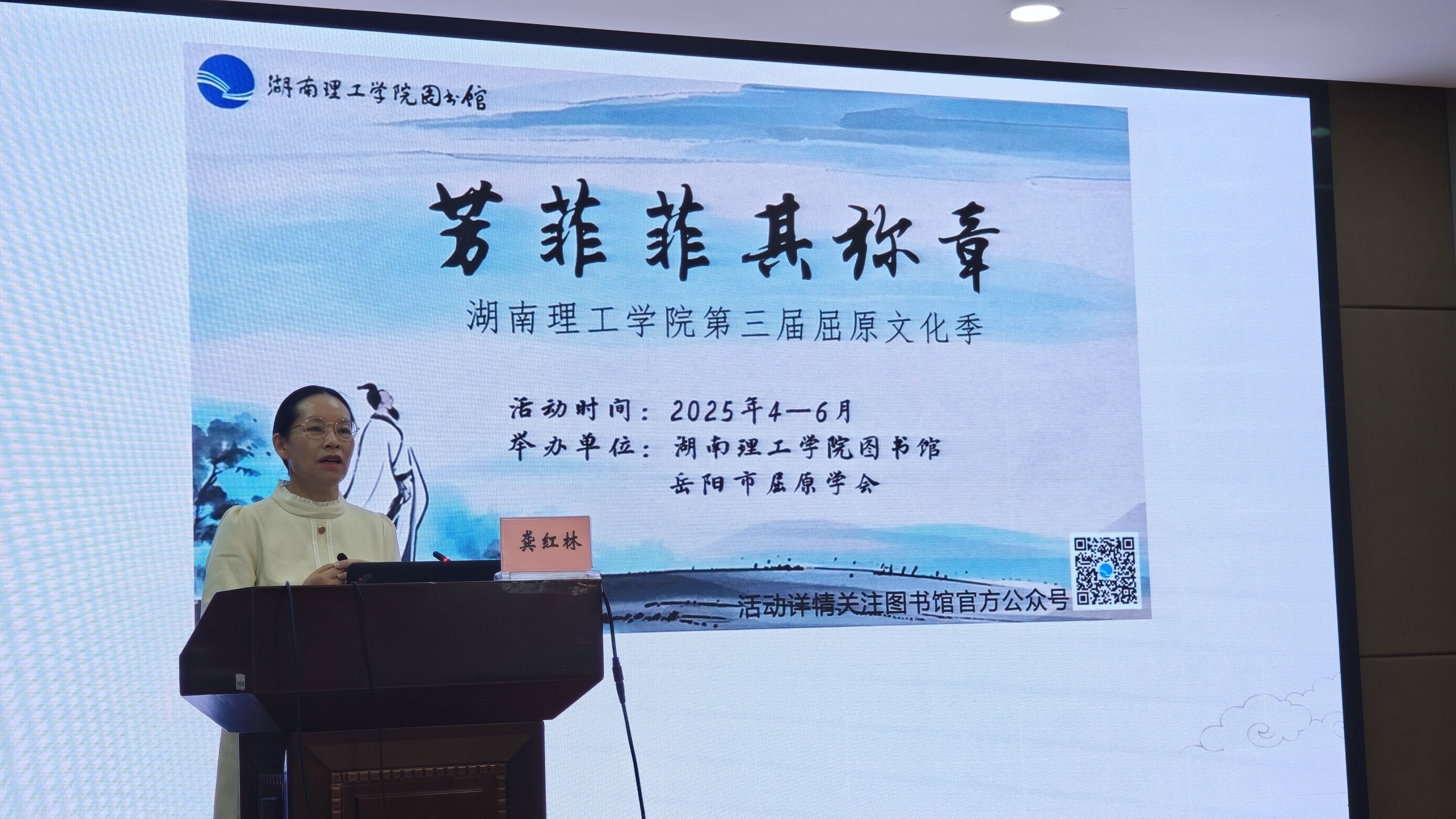 据悉,本次南湖学堂讲座正式拉开了“芳菲菲其弥章——湖南理工学院第三届‘屈原文化季’”的活动序幕。近年来,为活态传承屈原的精神遗产,湖南理工学院图书馆精心筹建屈学文献特藏室,倾力打造“屈原文化季”品牌,生动呈现屈学文化、龙舟文化、端午文化、楚文化等绚丽多姿的文化瑰宝,对于培育大学生的爱国爱乡情怀,筑牢信仰之基,增强文化自信具有润物无声之力量。
