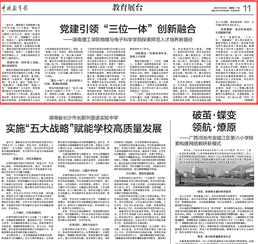 近年来,湖南理工学院物理与电子科学学院(以下简称“物电学院”)全面贯彻党的教育方针,落实立德树人根本任务,围绕“党建引领、‘三位一体’、创新融合”这条主线,探索出了一条具有鲜明特色的师范人才培养新路径。通过党建育人、课程思政、协同育人机制的深度融合,物电学院在教育教学改革中取得了显著成效,培养了一大批德才兼备的优秀师范人才,为地方基础教育发展注入强劲动力。
