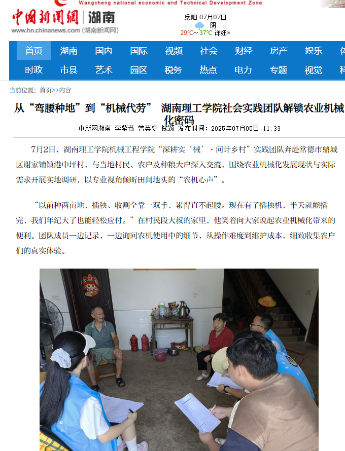 从“弯腰种地”到“机械代劳” 湖南理工学院社会实践团队解锁农业机械化密码