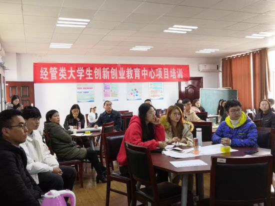 学生参加创新创业课程培训。