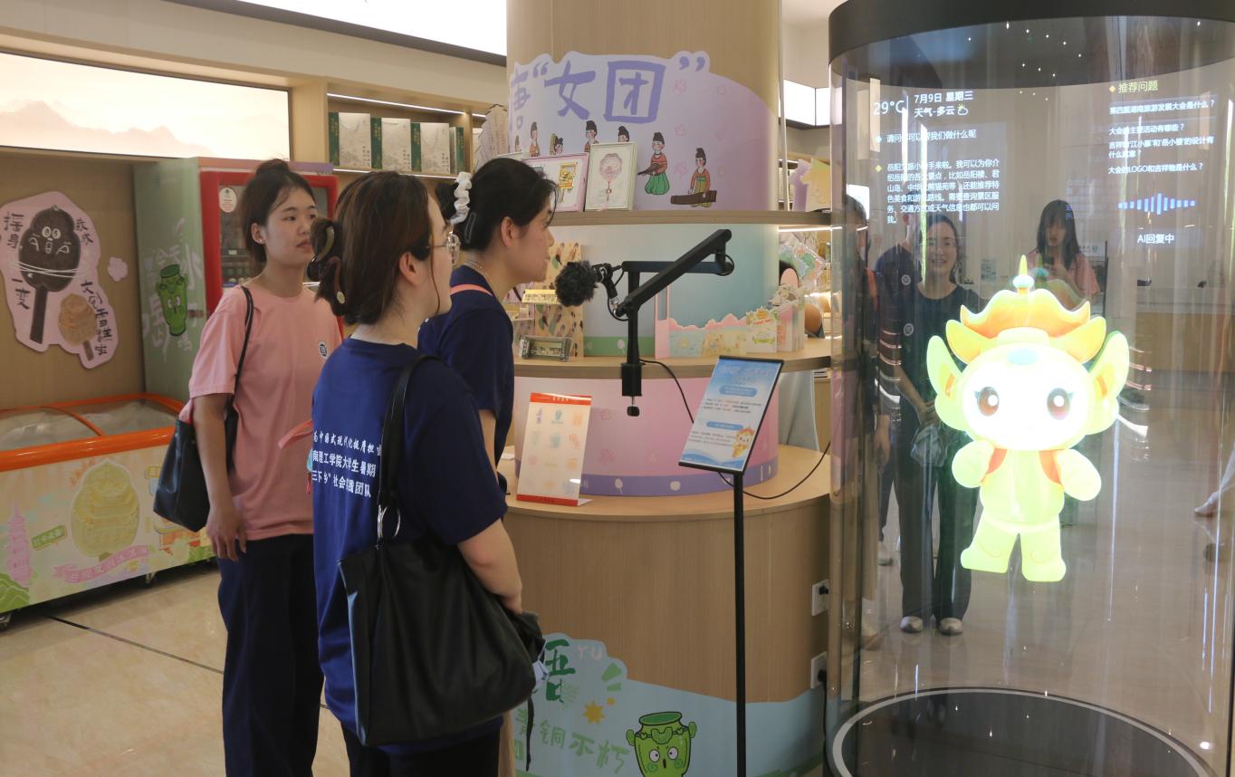 随后,团队走进岳阳市博物馆,仿佛踏入一场跨越时空的对话。入口处的AI语音导览系统轻声唤醒历史的记忆,随着脚步移动,耳边不断传来精准的解说,从商周青铜的纹饰寓意到宋代瓷窑的烧制技艺,清晰又生动。转角处的虚拟历史人物互动屏前,不少游客正与“范仲淹”隔空对话,询问《岳阳楼记》的创作背景,虚拟形象的动作神态栩栩如生,仿佛千年前的文人墨客就在眼前。