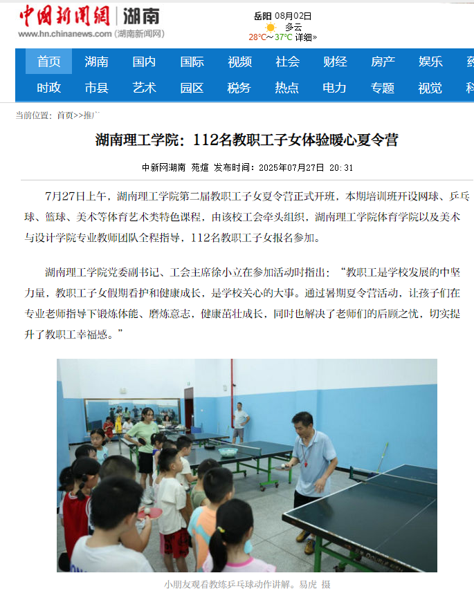 7月27日上午,湖南理工学院第二届教职工子女夏令营正式开班,本期培训班开设网球、乒乓球、篮球、美术等体育艺术类特色课程,由该校工会牵头组织,湖南理工学院体育学院以及美术与设计学院专业教师团队全程指导,112名教职工子女报名参加。