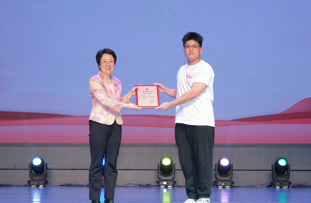 中国红十字会党组成员、副会长王斌为王俊涛颁发第2万例捐献荣誉证书。