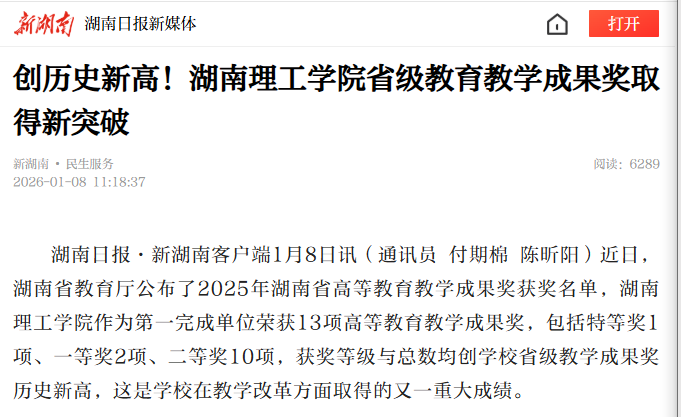 湖南日报·新湖南客户端1月8日讯(通讯员付期棉陈昕阳)近日,湖南省教育厅公布了2025年湖南省高等教育教学成果奖获奖名单,湖南理工学院作为第一完成单位荣获13项高等教育教学成果奖,包括特等奖1项、一等奖2项、二等奖10项,获奖等级与总数均创学校省级教学成果奖历史新高,这是学校在教学改革方面取得的又一重大成绩。
