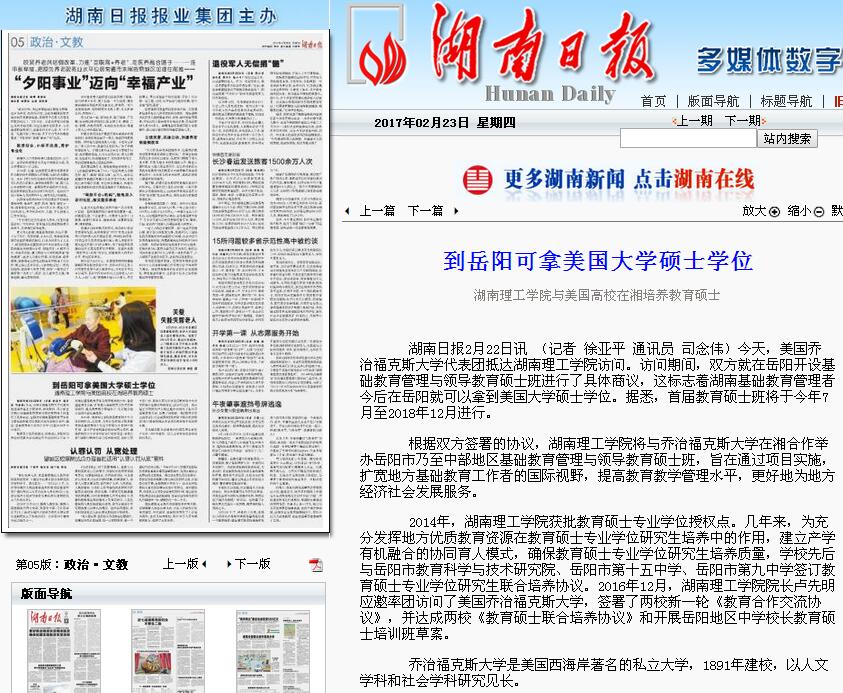 【湖南日报】到岳阳可拿美国大学硕士学位