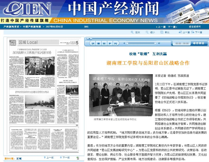 【中国产经新闻】湖南理工学院与岳阳君山区战略合作