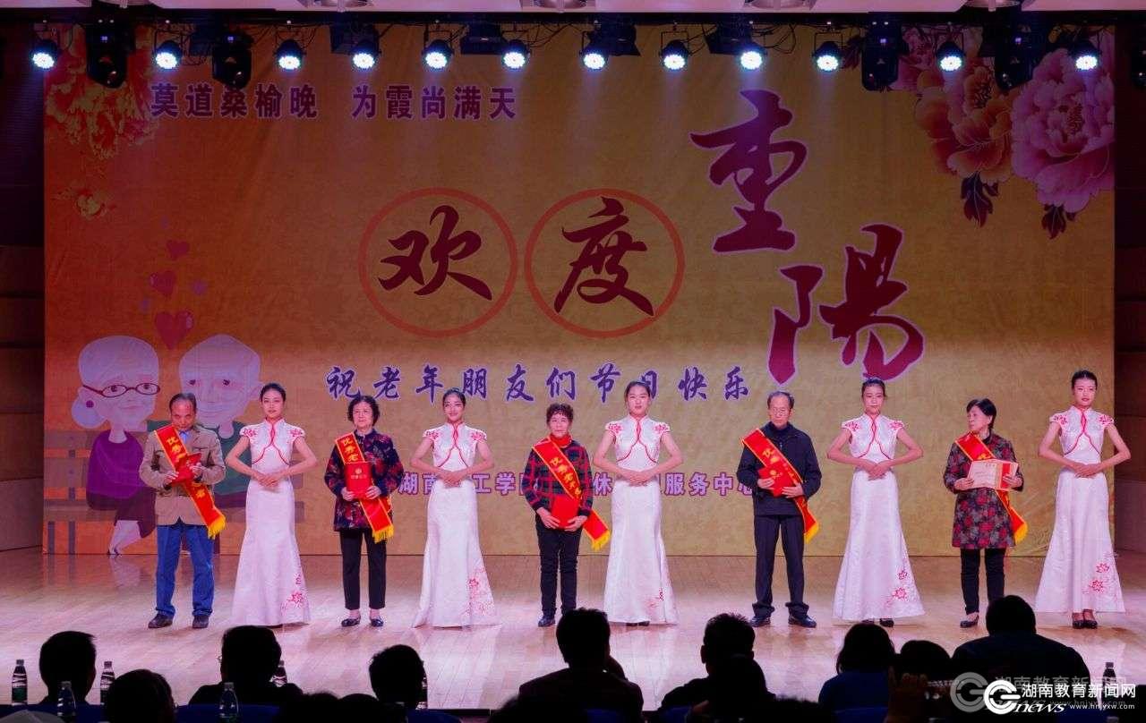 本网讯(通讯员 蔡雨)“下面请服务离退休教师优秀学生志愿者为健康老人佩戴绶带!”当学生志愿者代表为健康老人戴上绶带的时候,全场响起热烈掌声。10月24日,湖南理工学院举行2017年庆祝重阳节暨文艺表演活动,全校离退休教师欢聚一堂,共庆重阳佳节。