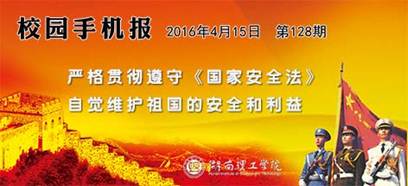※本手机报由湖南理工学院党委宣传部编辑,免费发送,欢迎阅读。更多校园资讯请关注新浪微博@湖南理工学院。