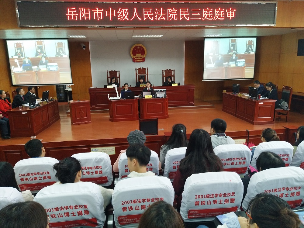 岳阳市中级人民法院民三庭在政法学院模拟法庭开庭审案