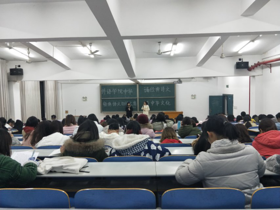 校园网讯 11月21日晚7点,外语学院中华经典诗文朗诵大赛在15208成功举行。本次大赛由黄思杰和余佳琳主持,外语学院团学分会主席王园晖、团总支副书记杨冬霞以及文娱部部长张晖等担任本次比赛的评委。
