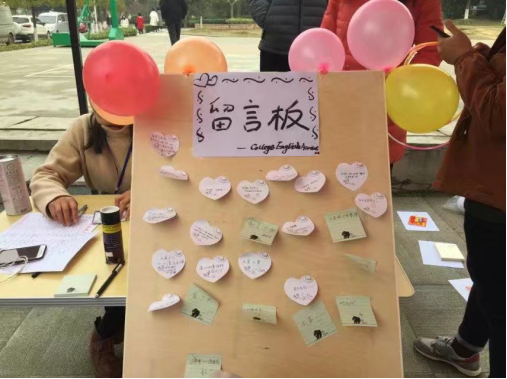 活动期间,设置套圈得礼物的游戏环节。会员们先抽取写有相应大小的纸条以获得不同的套环,再站在指定位置套礼物,其中礼品包括笔记本、手机支架、抱枕以及安慰奖暖宝宝。在寒冷的冬天给予会员浓浓的温暖,享受一起玩耍的乐趣。活动第二部分,爱心留言环节。参与者可选择在精心准备的留言板上写上建议、美文甚至表白,让会员们在大英协会尽情展现自己,也为此活动留下美好的记录,更让大英协会在留言中找到所做事的意义,丰富校园文化。会员在参与过程中,既与伙伴们分享赢得礼物的喜悦,也给套圈失误的朋友鼓励和安慰,时不时还有阵阵为套圈技术高超而发出的惊叹声与赞扬声。全场气氛高涨,洋溢着欢声笑语,为会员权益日增添不少色彩。