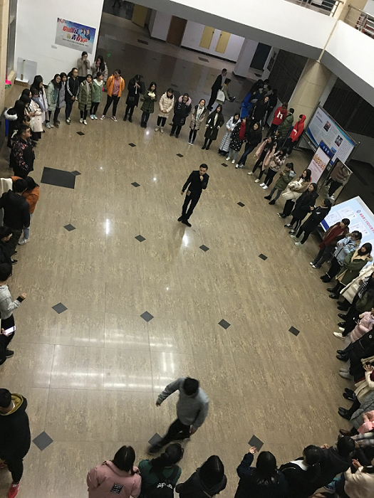 为组织好此次学生团体心理辅导系列活动,学院党总支副书记石蕙及辅导员与团学分会心理健康部的同学们一道,反复研讨实施方案,精心设计活动内容。在两个月的时间里,年级辅导员杨宗圆、王旭智,班主任石蕙、贺志韧等老师分别带领着各自分管的年级或班级全体同学利用课后、晚上或周末时间分班开展团体心理辅导系列活动。