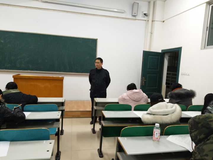 校园网讯 12月18日晚7时,政法学院新生入学教育考试如期举行,2017级全体新生参加此次考试。学院党总支书记刘淳松、辅导员杨宗圆等老师进行考试巡查,各班班主任助理监考。